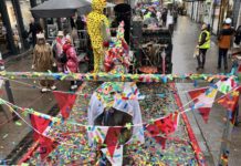 Zur Probe mit Fototermin hat er sich ordentlich in Schale geschmissen: Ein langes schwarzes Kleid mit Glitter, eine auffällige silberne Kette, um die Schultern eine Stola und Abendhandschuhe, die ihm bis zum Ellenbogen reichen. Er verkörpert Amalie von Gadderbaum, die reiche und ziemlich abgehobene Besitzerin des Hotel Blitz. Man merkt ihm den Spaß an der Sache an. „Ich wollte diese Rolle unbedingt. Ich gehe wirklich darin auf.“