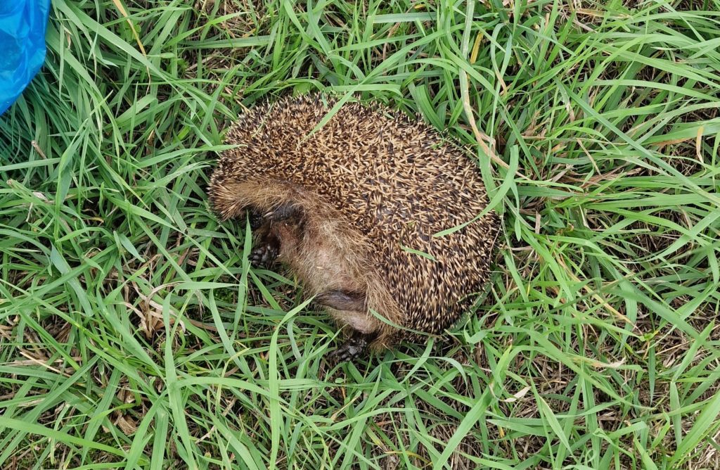 Auf dem Bildern sind zwei tote Igel zu sehen. Die wohlgenährten Tiere steckten zuvor in blauen Säcken, die jemand am Feldweg deponiert hatte.