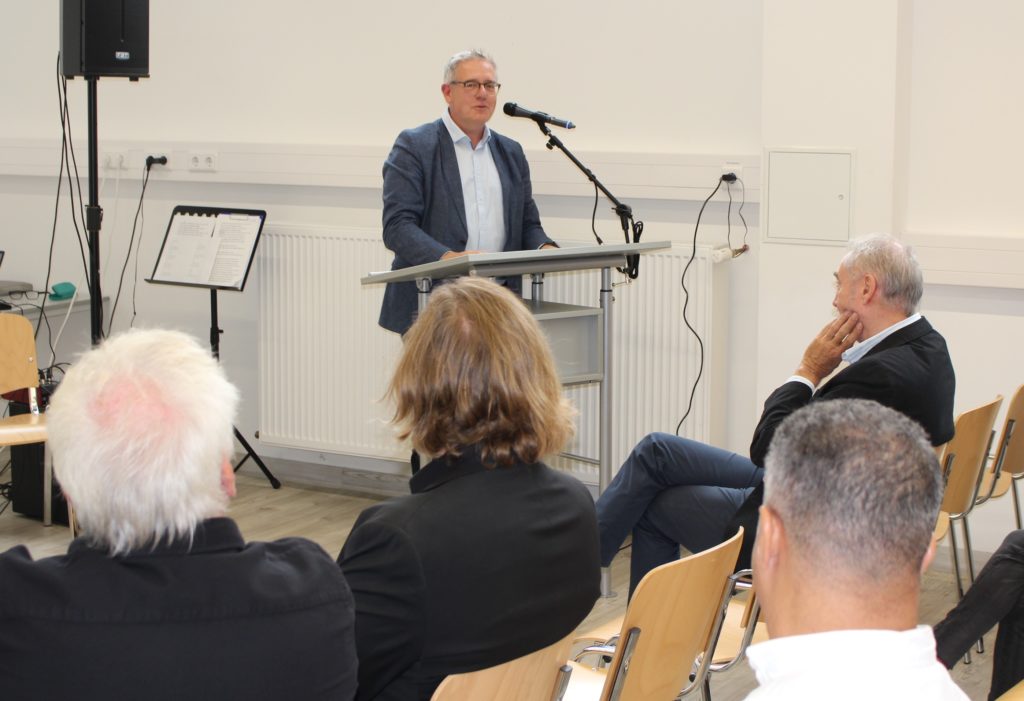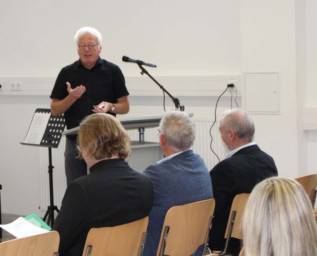 Dabei würdigten die Laudatoren, hier in Person des ehemaligen Geschäftsführers, Herbert Dörmann, sowie des aktuellen Geschäftsführers, Holger Schelte, Schulzes außerordentliches Engagement und seine integrale Rolle bei der Gründung des Werkstatt Berufskollegs (WBK) im Jahr 2013. Die stetige Weiterentwicklung der Schule lag ihm dabei immer am Herzen. Gestartet in 2013 mit 60 Schüler*innen, fünf Klassen und nur einem Teilzeit-Bildungsgang beschult das Berufskolleg der Werkstatt auf dem Gelände der Unnaer Lindenbrauerei heute jährlich bis zu 700 Schüler in elf Bildungsgängen.