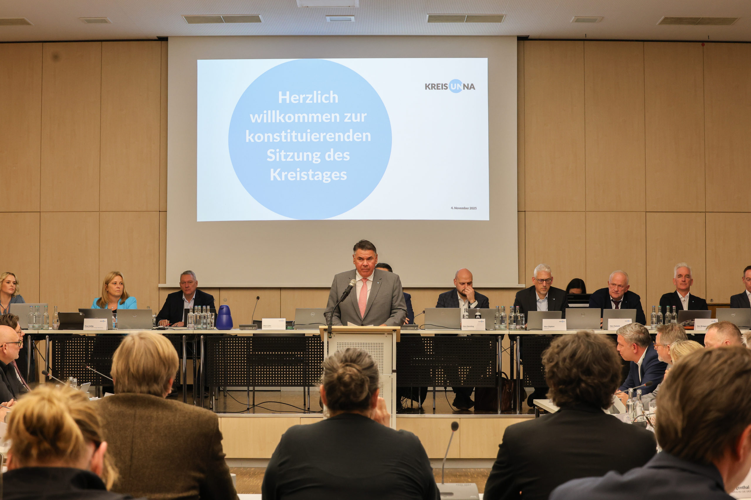 Wichtige Entscheidungen zur Weiterentwicklung des Kreises Unna werden im neu konstituierten Kreistag getroffen, der sich am 4. November zu seiner ersten Sitzung traf. Gebildet haben die 78 Mitglieder, die der Landrat als Vorsitzender in seiner ersten Sitzung verpflichtet hat, sechs Fraktionen mit der folgenden Sitzverteilung: