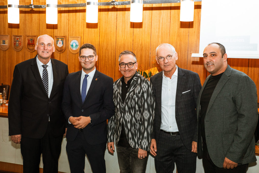 081: v.l.: Thorsten Redeker (1. stv. BM; CDU), Christian Klicki (Beigeordneter; CDU), Andre Jethon (Beigeordneter & Kämmerer; SPD), Arnold Reeker (neu gewählter Erster Beigeordneter), Ferhat Aydin (2. stv. BM; SPD).