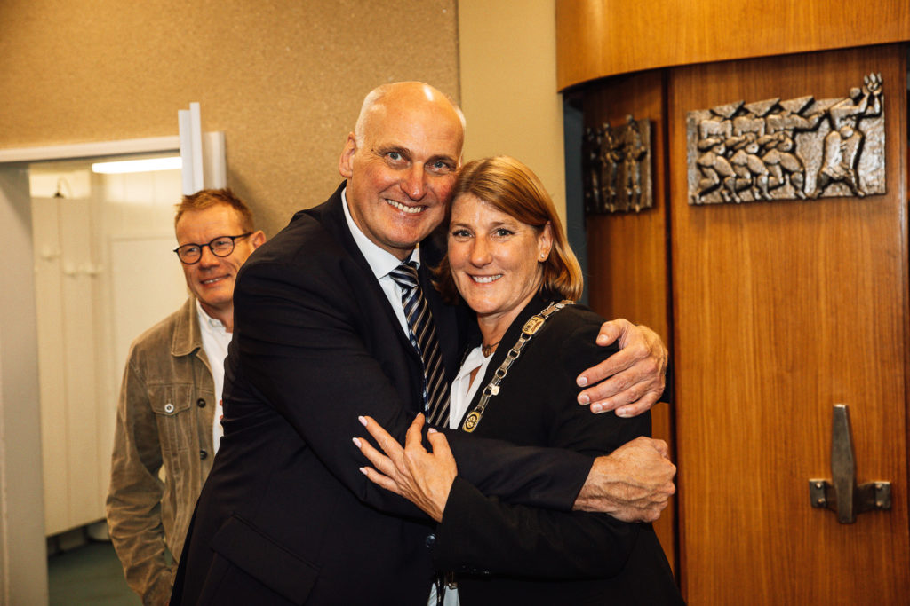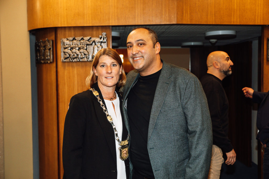 063: Gratulation der Grünen-Fraktion (Hakan Takil, Gudrun Schwiede) an beide neuen stellvertretenden Bürgermeister.