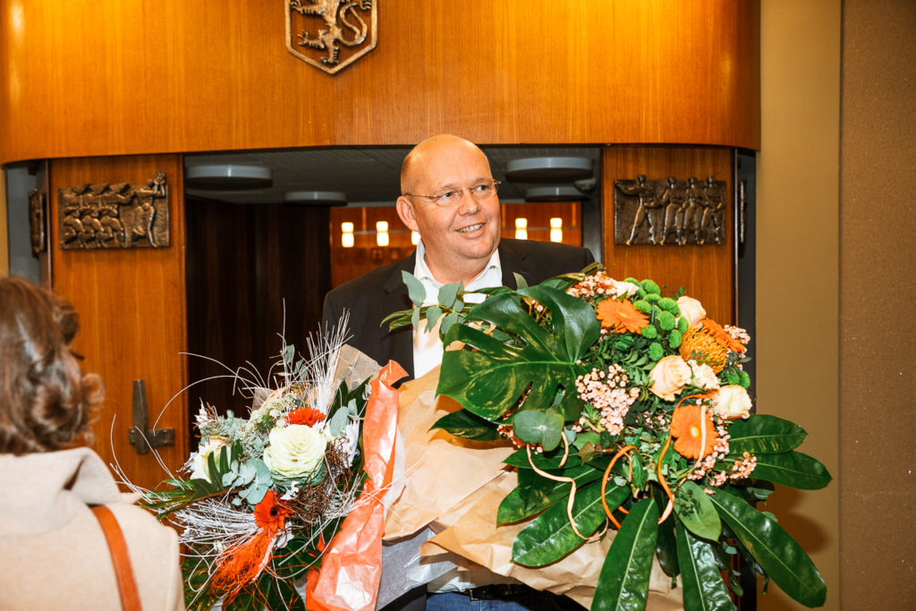 160: Kann viele Gratulationssträuße mit nach Hause nehmen: Der Ehemann der Bürgermeisterin Heiko Teutenberg.
