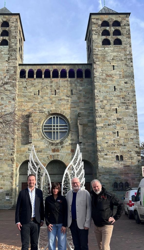 Ein neuer, drei Meter hoher Fotopoint aus Engelflügeln sorgt vor der katholischen Kirche für bleibende Momente.