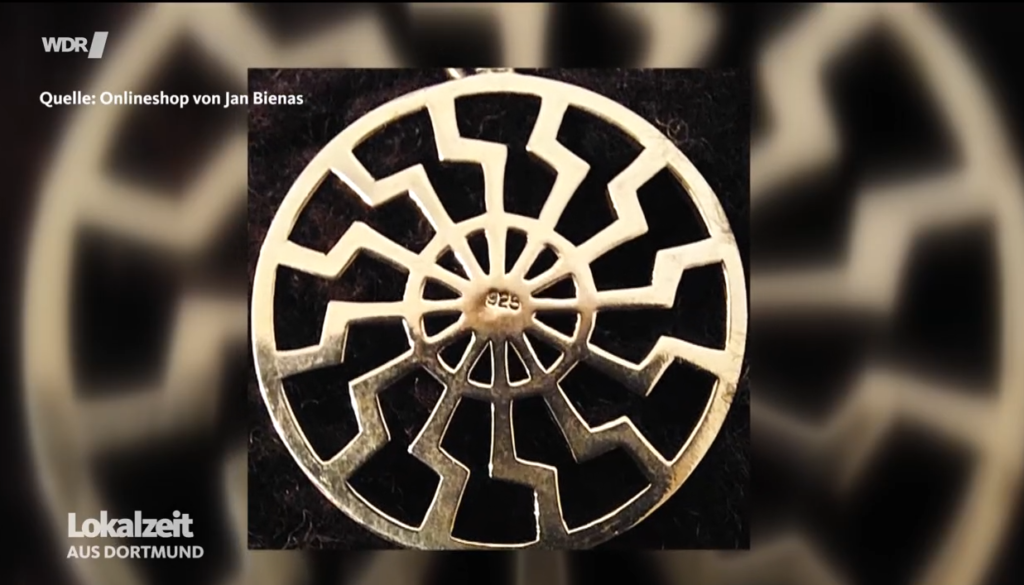 Gemeint sind die Waren, die Bienas in seinem Onlineshop verkauft, darunter die „Schwarze Sonne“, die seit den 90er Jahren in rechtsextremen Kreisen als Ersatz für das verbotene Hakenkreuz gilt. Dazu hatte der WDR bereits einige Wochen vor der Kommunalwahl eine Sendung gedreht mit dem Ziel, mutmaßlich rechtsradikale Hintergründe antretender AfD-Lokalpolitiker aufzudecken.