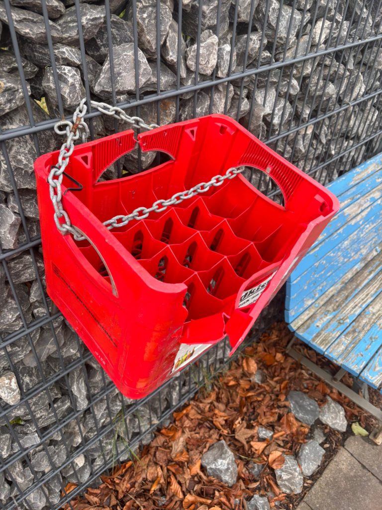 Bislang unbekannte Täter beschädigten eine an der Haltestelle angebrachte Pfandkiste.