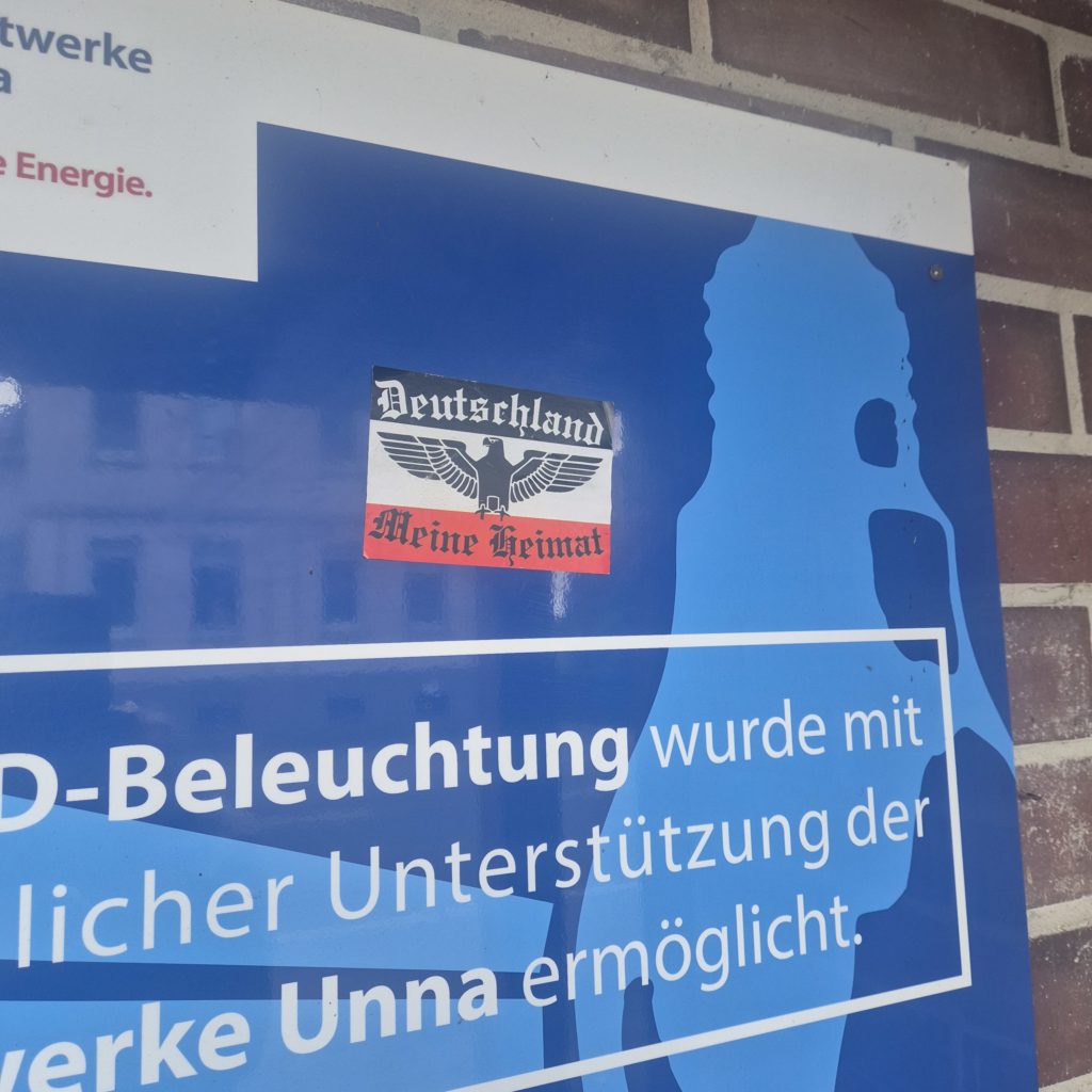 Das Schlimmste, was uns in der Form noch nie passiert ist: Überfall wurden Nazi-Aufkleber befestigt mit der Aufschrift „Deutschland meine Hemat“ in den Farben Schwarz, Weiß, Rot.