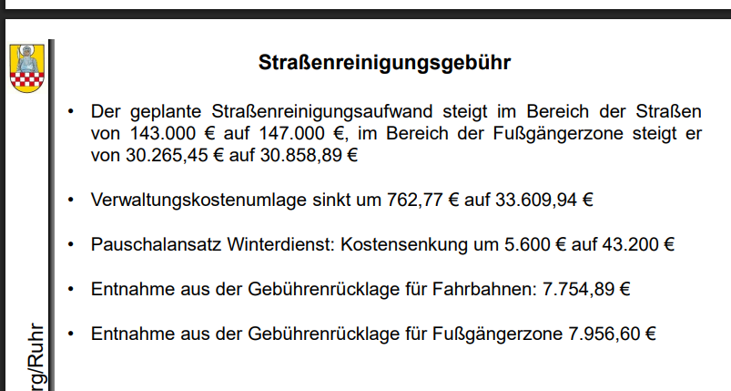 Am stärksten steigen die Kosten für die Entwässerung. Biomüllabfuhr und Sperrmüll sowie Straßenreinigung bleiben auf aktuellem Stand.