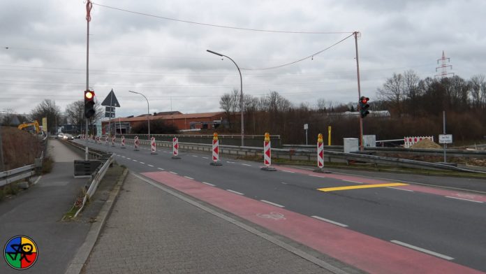 Die neue Verkehrsregelung auf der Brücke betrifft auch den Radverkehr, der an dieser Stelle über die Straße geführt wird. Fußgänger hingegen sind von der Einschränkung nicht betroffen.