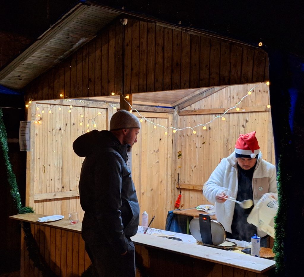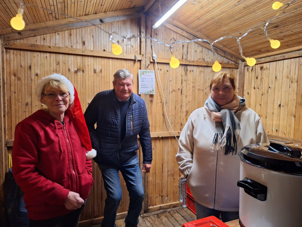 Der Glühwein war, wie am Stand der AWO auf dem Weihnachtsmarkt in der Unnaer Innenstadt, von der Weinhandlung Maringer besorgt worden. Weißer und roter rann üppig in die Tassen, als Verpflegung gab es Crepes, Bratwurst und selbstgemachte Erbsensuppe aus einem riesigen Topf.