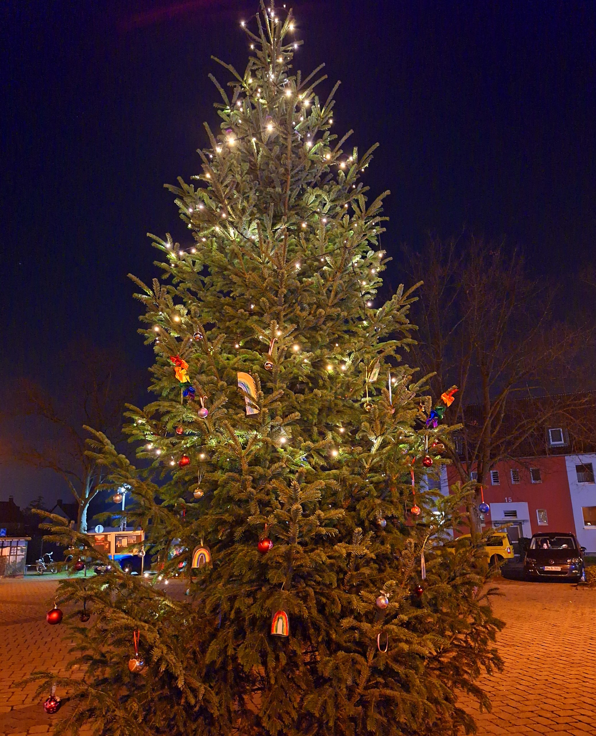 Auf dem Marktplatz Königsborn, auf dem ein mit Christbaumkugeln und Regenbögen geschmückter Weihnachtsbaum thronte, fanden sich ab 14.30 Uhr viele Familien mit Kindern sowie weitere Königsborner ein, um sich in netter Gesellschaft mit kurzweiliger Unterhaltung auf den vierten Advent einzustimmen.