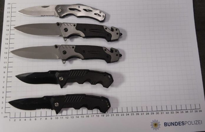 Bei einer anschließenden Durchsuchung entdeckten die Beamten jedoch drei weitere Messer bei dem Mann, darunter zwei Einhandmesser. Ein weiteres fanden die Beamten bei dem 42-jährigen Begleiter aus Bergkamen.