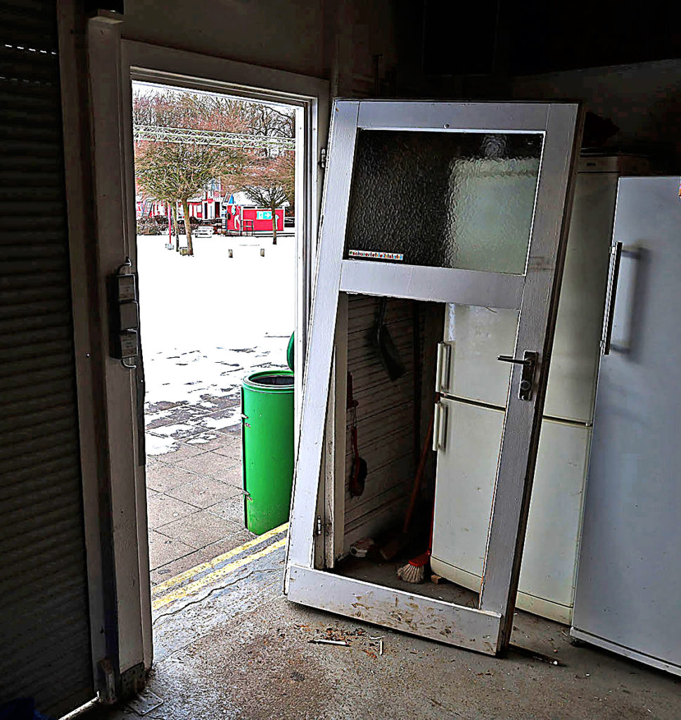 „Zum einen sind ein Außentor, zwei Garagentore und die Tür zur Festhalle aufgebrochen und dabei zum Teil erheblich beschädigt worden. Vor allem aber wurden eine Reihe von Geräten und Maschinen, die das Team Elsebad für bauliche und gärtnerische Arbeiten benötigt, gestohlen.“