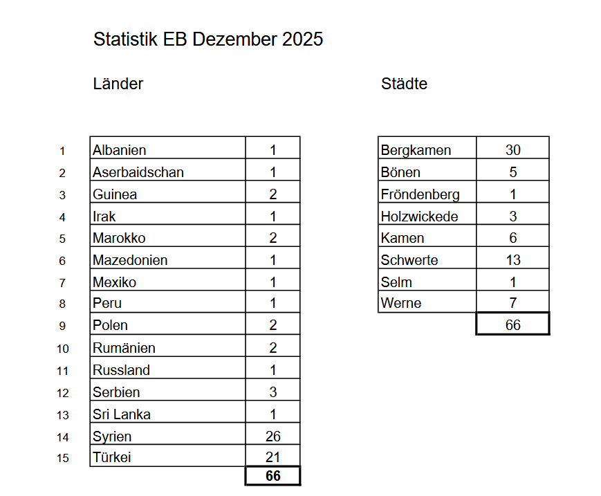 30 von den insgesamt 66 Personen wohnen in Bergkamen und 13 in Schwerte – auch das ist so wie fast immer.