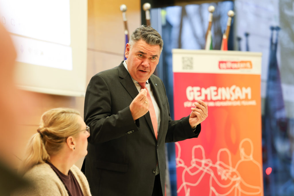 „Ich habe auf der ersten Demokratiekonferenz im Dezember 2025 gesagt, dass Demokratie keine Selbstverständlichkeit ist. Wir alle müssen daran arbeiten, dass sie erhalten bleibt. Und ich bin froh, dass dieser Gedanke keine zwei Monate später eine konkrete Umsetzung mit dem Bündnis erfährt. Hier geht es darum, an konkreten Ideen zu arbeiten und so zur Stärkung unserer Demokratie beizutragen“, so Landrat Mario Löhr auf der Veranstaltung.