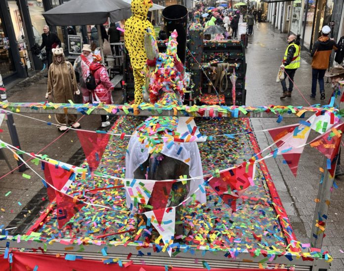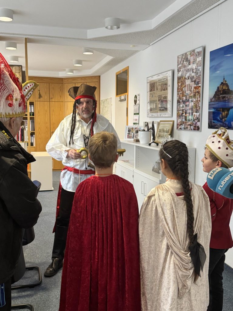 Im Rathaus wurde nach guter Tradition der Bürgermeister abgeholt, diesmal als Pirat verkleidet, was möglicherweise tief blicken lässt, vielleicht aber auch einfach nur eine witzige Kostümierung war. Dazu wirbelte die Konfettikanone in bewährter Manier ihre bunten Schnipsel durch die Bummelzone.