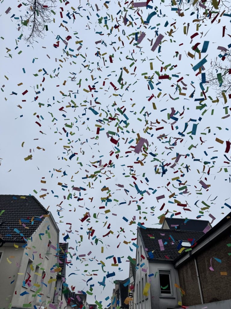Unna Iii-Aah mit Konfettikanone diesmal im Dauernieselregen – Bonbons und Berliner schmeckten trotzdem