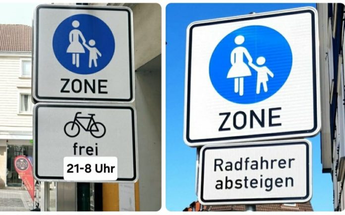 „Ursprünglich durften Radfahrer die Fußgängerzone in den Abend- und Nachtstunden nutzen. Mit der Einführung des Nachtfahrverbots wurde diese Regelung aufgehoben.