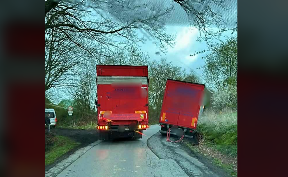 Buchstäblich schief ging am Mittwochmorgen, dem 1. April, die Fahrt eines Lkw-Fahrers verbotenerweise über den Thabrauck zwischen der Wilhelmshöhe, Fröndenberg-Frömern und Ardey.