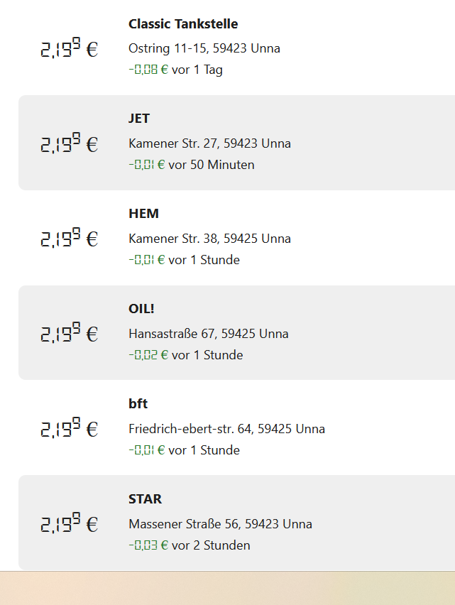 „Ich arbeite an einer Tankstelle in Unna. Bisher hatten wir im Schnitt ca. 40 Preisänderungen pro Tag, zum Teil mit einem Unterschied von 20 Cent pro Liter.