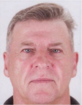 Er ist ca. 180 cm groß, graue Haare, möglicherweise bekleidet mit einer schwarzen Jogginghose und schwarzen Sneakern.