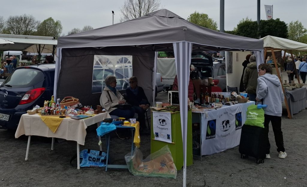 Der Eine Welt Laden bot an seinem Stand eine sorgfältige Auswahl an Produkten des Fairen Handels an und zeigte damit Alternativen für einen bewussten, nachhaltigen Einkauf auf. Im Sortiment: unter anderem Kaffee und Schokoladen, die mit einer eigens für Fröndenberg gestalteten Umverpackung präsentiert wurden. Die Ruhrstadt wurde zum Jahresbeginn durch das Engagement des Ein Welt Ladens erneut als FairTrade-Stadt ausgezeichnet.